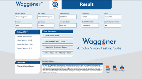 TestingColorVision.com (TCV) Description$$$TestingColorVision.com was created to provide a validated, diagnostic color vision test that is accessible online. There is a plethora of color vision tests online but none of them have gone through such a rigorous validation process. TCV offers the opportunity for individuals to test their own color vision and organizations to do bulk testing on their employees. TCV offers packages that range from testing 1 individual all the way up to tens of thousands. TestingColorVision.com can also integrate with learning management systems using APIs (Ex. AICC). If you are interested in this product, please visit TestingColorVision.com or contact Waggoner Diagnostics at +1 (949) 396-1694. If you make a purchase for TestingColorVision.com through WaggonerDiagnostics.com, please allow 48 hours for an account to be created for you on TestingColorVision.com. You will receive an email with your account information.$$$